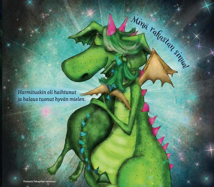 Kirja vie lukijan keskelle Pomenian taikamaailmaa ja kertoo tarinan taikapölyn mahtavasta voimasta. Ainutlaatuisella tyylillä kuvitettu kirja avaa oven satujen maailmaan, jossa osataan arvostaa niitä kaikkein pienimpiäkin asioita. Ripauksella taikapölyä sinäkin voit tehdä mitä tahansa!