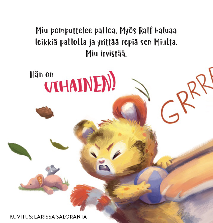 Kirjan suloisesta kuvituksesta vastaa lastenkirjojen kuvittaja ja graafinen suunnittelija Larissa Saloranta.