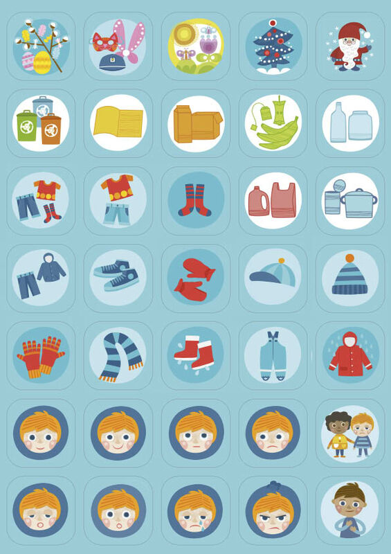 Täydennyspakkauksen kuviin on valittu lisää arkisia puuhia täydentämään kalenterin alkuperäistä valikoimaa.