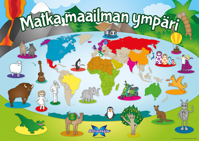 Mistä maasta tulee Kepa Kenguru? Entä missä asustaa Pilli Pingviini? Värikkäässä, A1-kokoisessa Aistiseikkailu-julisteessa Aistiseikkailu 2 - ja Aistiseikkailu 3 -materiaaleista tutut maat ja hahmot löytyvät maailmankartalta.