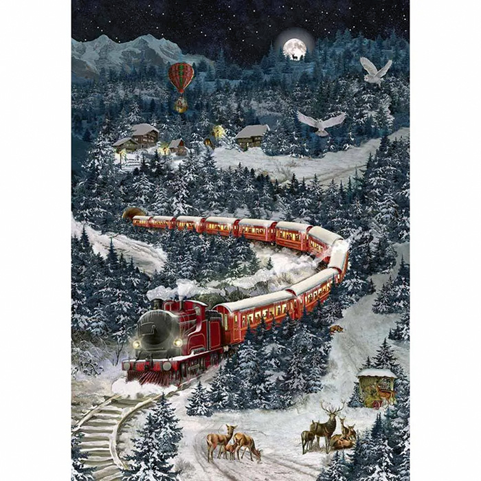 Kaunis Spiegelburgin joulukalenteri, jossa kuva-aiheena jouluinen pikajuna!