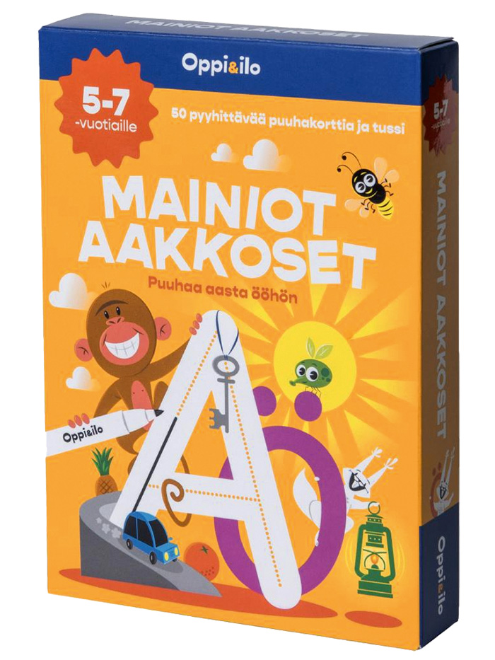 Tutustutaan aakkosiin ja harjoitellaan kirjainmuotojen piirtämistä, kuulostellaan alkuäänteitä sekä harjoitellaan tavuja ja sanoja. Monipuoliset tehtävät kehittävät lapsen luku- ja kirjoitustaitoa. Kiinnostava puuha lisää keskittymis- ja havainnointikykyä, ja onnistumisen kokemus kannustaa uusien taitojen opetteluun.