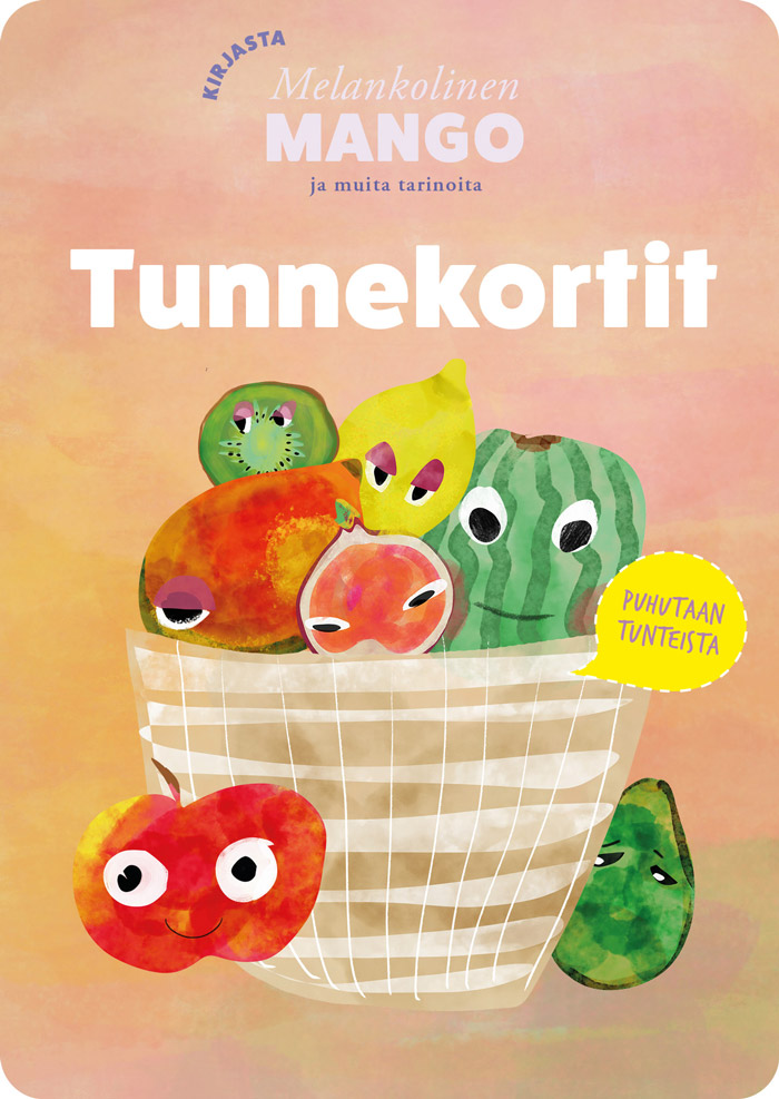 Suloiset Melankolinen mango -tunnekortit sopivat monenlaisiin satu-, leikki- ja kasvatushetkiin. Korttien avulla on helppo aloittaa keskusteluja arjen tapahtumista ja tunteista tai inspiroitua askartelemaan ja leikkimään teeman mukaisesti.