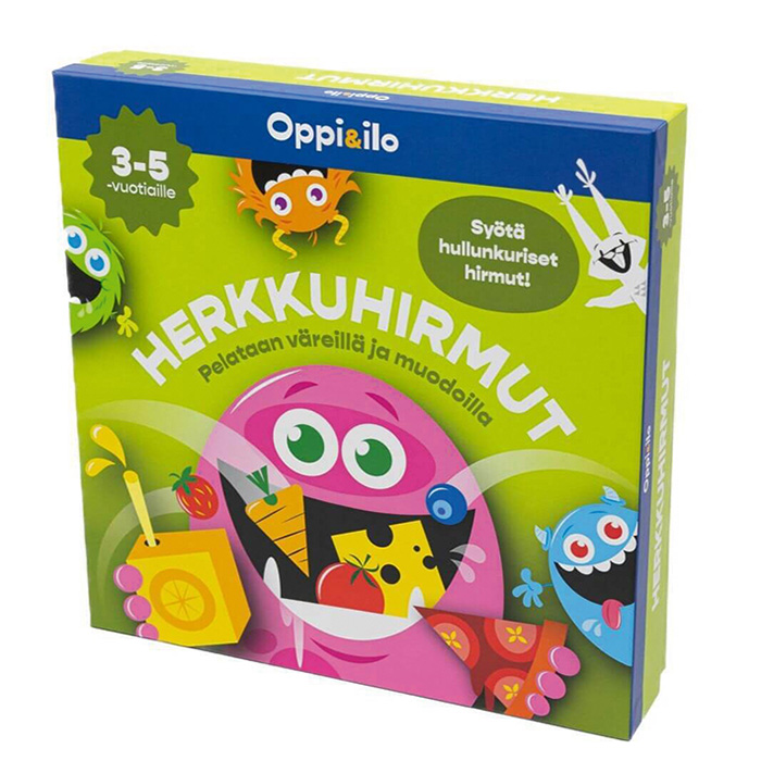 Oppi&ilo Herkkuhirmut on kiva ja kehittävä lajittelupeli pienille lapsille.