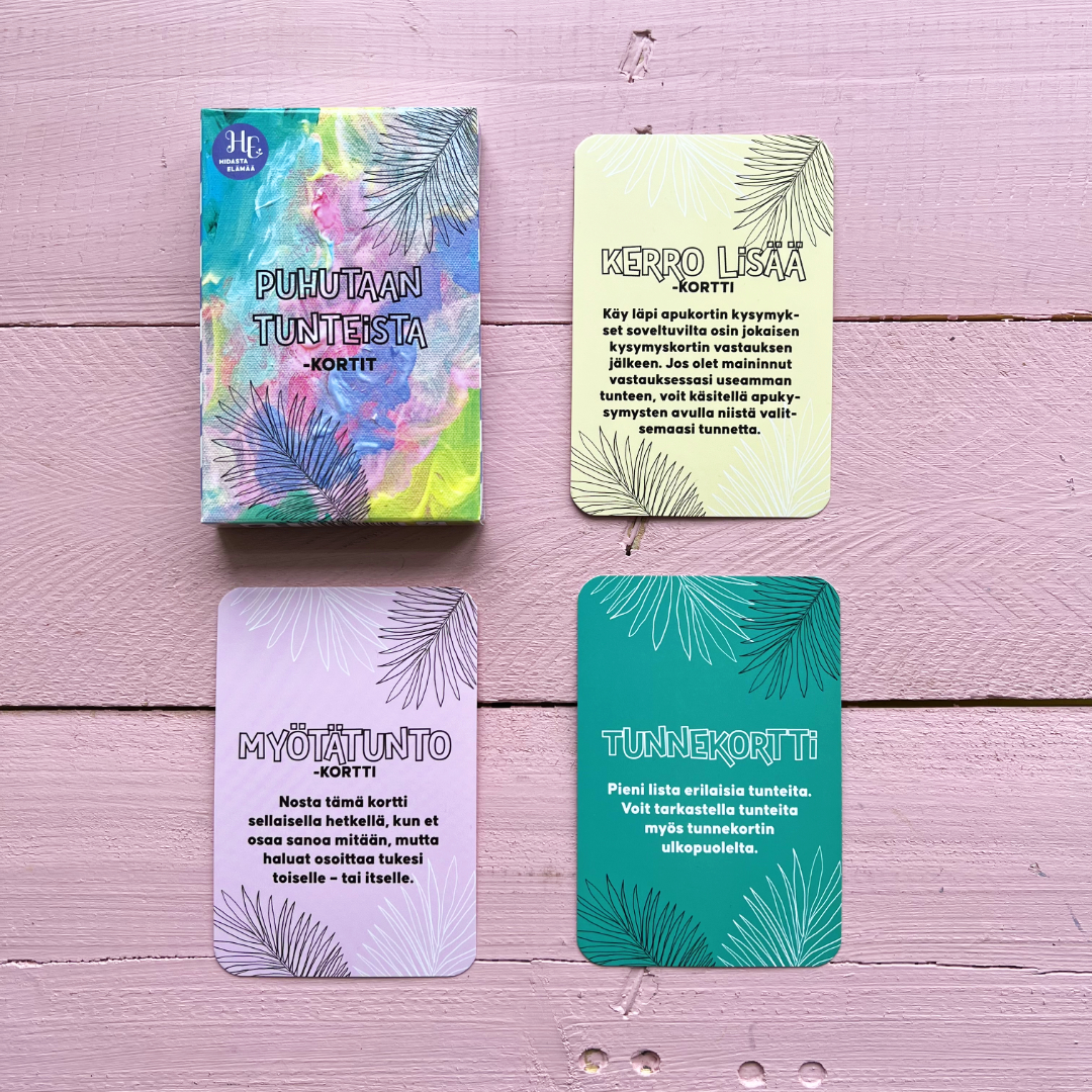 Puhutaan tunteista -kortit auttavat löytämään sanoja omille kokemuksille, keskustelemaan tunteista ja lisäämään tunnetaitoja.