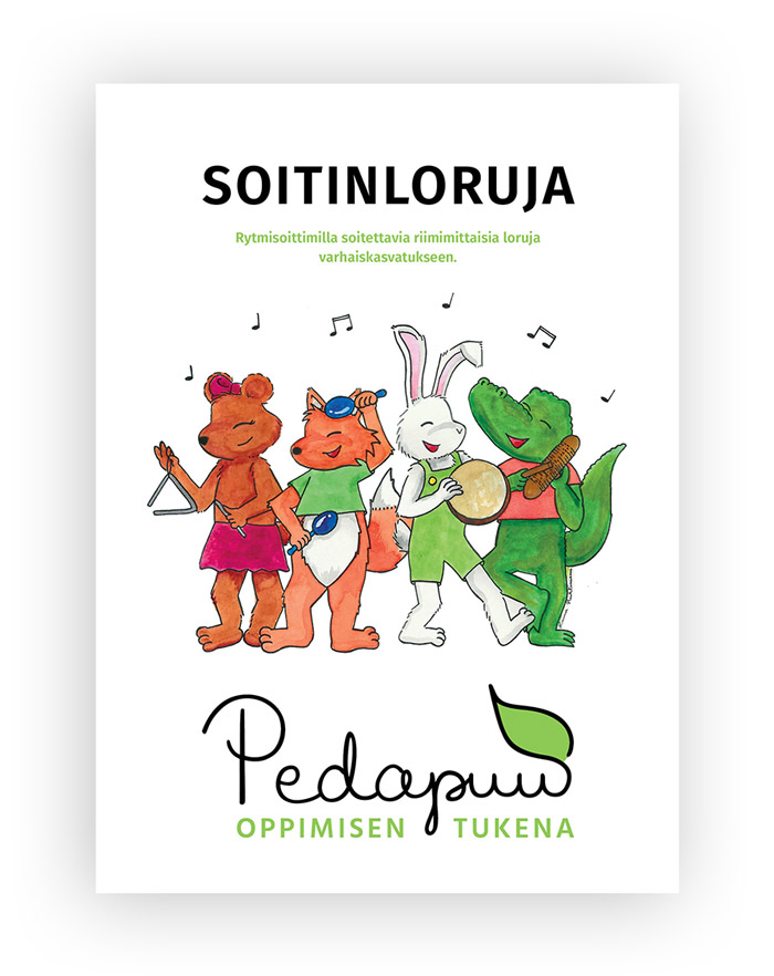 Tämä korttisarja on tarkoitettu pedagogiseksi musiikkikasvatuksen työvälineeksi varhaiskasvatukseen. Riimimittaisten soitinlorujen avulla voit tutustuttaa lapsia yleisimpiin rytmisoittimiin ja lisätä soittamisen iloa jokaiseen vuodenaikaan soveltuvilla aiheilla. Lorujen riimimittaisuus ja rytmikkyys tukevat lapsen kielellistä kehitystä.