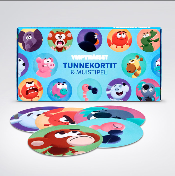 Ympyräiset Tunnekortit sisältää 48 korttia, joihin on kuvattu 24 erilaista tunnetta. Korteissa seikkailevat valloittavat Ympyräiset-hahmot! Korttipakkaan on koottu ideoita tunnekorttien hyödyntämiseen ammattilaiselle ja kotiin yhden lapsen tai lapsiryhmän kanssa käytettäväksi.