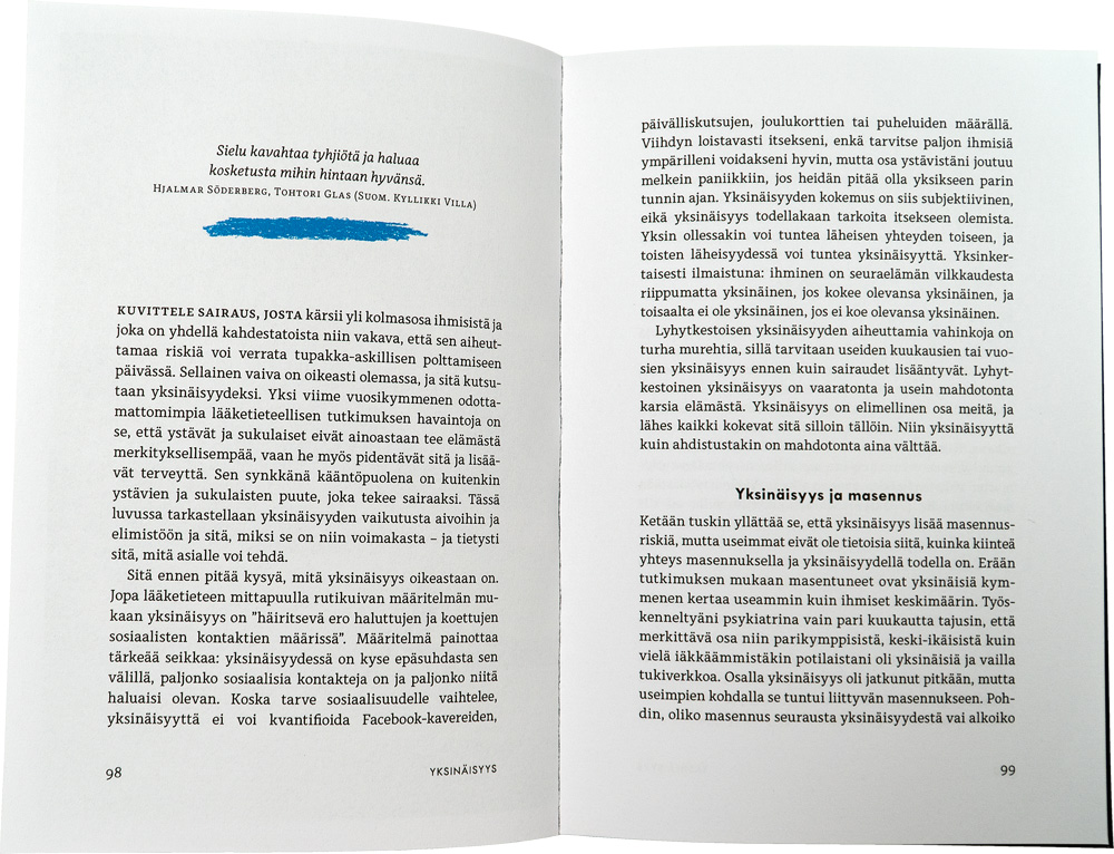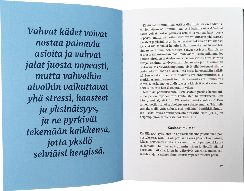 Uskon pahoinvoinnin hyvinvoinnin keskellä johtuvan siitä, että olemme unohtaneet olevamme biologisia olentoja. Olemme unohtaneet, mitkä asiat lisäävät hyvinvointia. Siksi käsittelen tunne-elämää ja mielialaa aivojen näkökulmasta ja tarkastelen sitä, miksi aivot toimivat kuten toimivat. Tavattuani tuhansia potilaita olen käsittänyt tämän tiedon tärkeyden. Se auttaa ymmärtämään, mihin kannattaa keskittyä voidakseen mahdollisimman hyvin. Tieto auttaa ymmärtämään omaa mieltä ja suhtautumaan itseen lempeämmin.
