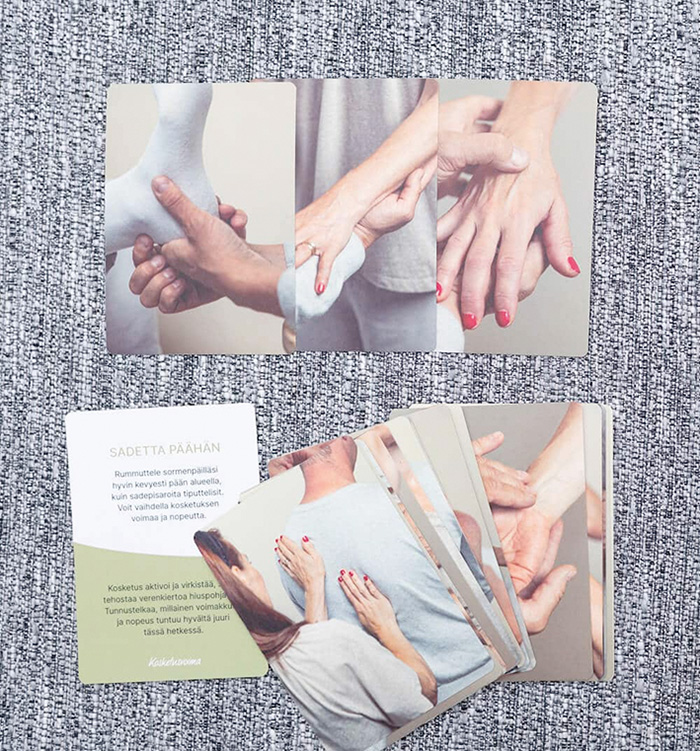 Kosketusvoima-korttipakka on tarkoitettu kaikille. Pakan jokaisessa lähes 40 kortissa esitellään ja ohjataan yksi kosketus, samalla kertoen sen merkityksestä ja voimasta.