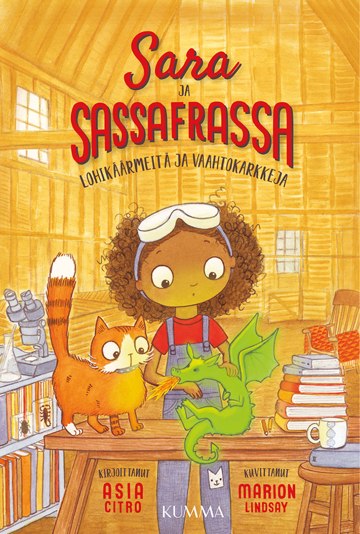 Lohikäärmeitä ja vaahtokarkkeja aloittaa uuden useita palkintoja voittaneen Sara ja Sassafrassa -sarjan, joka on täynnä taikaolentoja, arvoituksia ja seikkailuja. Jännittävän tarinan ohella kirjat tutustuttavat lukijan myös hauskalla tavalla lasten omiin tiedekokeiluihin.