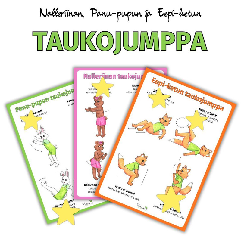 Taukojumppakuvat ja -liikkeet on tehty varhaiskasvatukseen ja pienille koululaisille omaehtoisen liikunnan lisäämiseen.