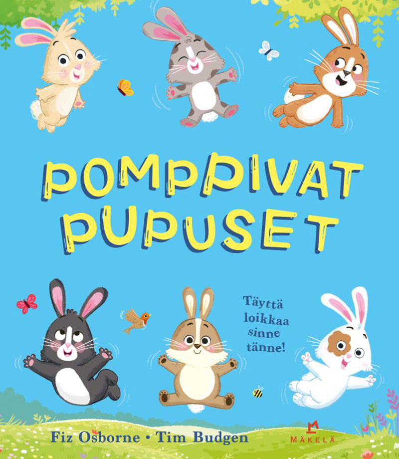 Pikku pupusten vauhdikasta päivää seuraava riimitelty tarina saa lukijankin polvet joustamaan ja pyllyn hytkymään. Oletko valmiina pitkäkorvien pompputreeniin?