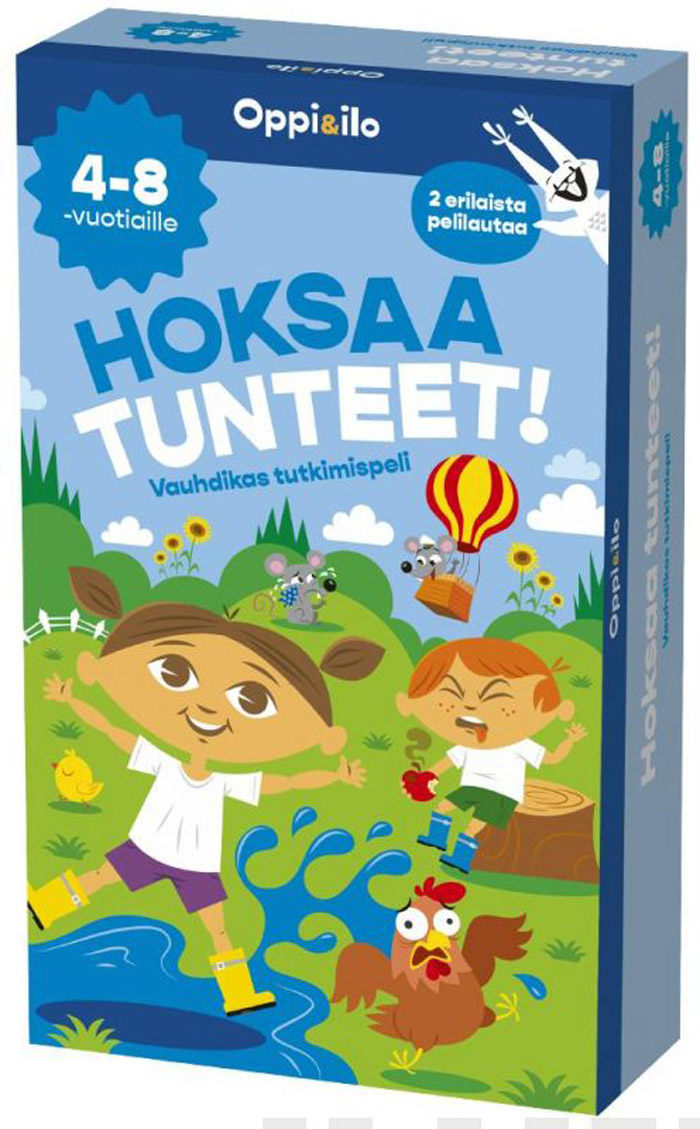 Runsas ja humoristinen kuvitus ilahduttaa kaikenikäisiä pelaajia. Hauskaa vaihtelua peliin tuo kaksipuolinen koottava pelilauta, jossa on helpompi ja haastavampi puoli. Tunteiden tunnistaminen ja nimeäminen on tärkeä pohja tunnetaitojen kehittymisessä. Yhteisten pelihetkien kautta tämäkin taito kehittyy oivaltavalla tavalla!