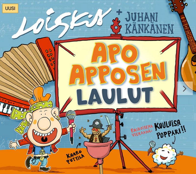 Perheenjäsenten musiikkiesityksien myötä oman laulunsa saavat kaurapuuroukkeli Kaaro Puttila ja sohvanraossa asusteleva Kuuluisa Poppari sekä monet muut Apo-kirjoista tutut hassut tyypit ja tapaukset.