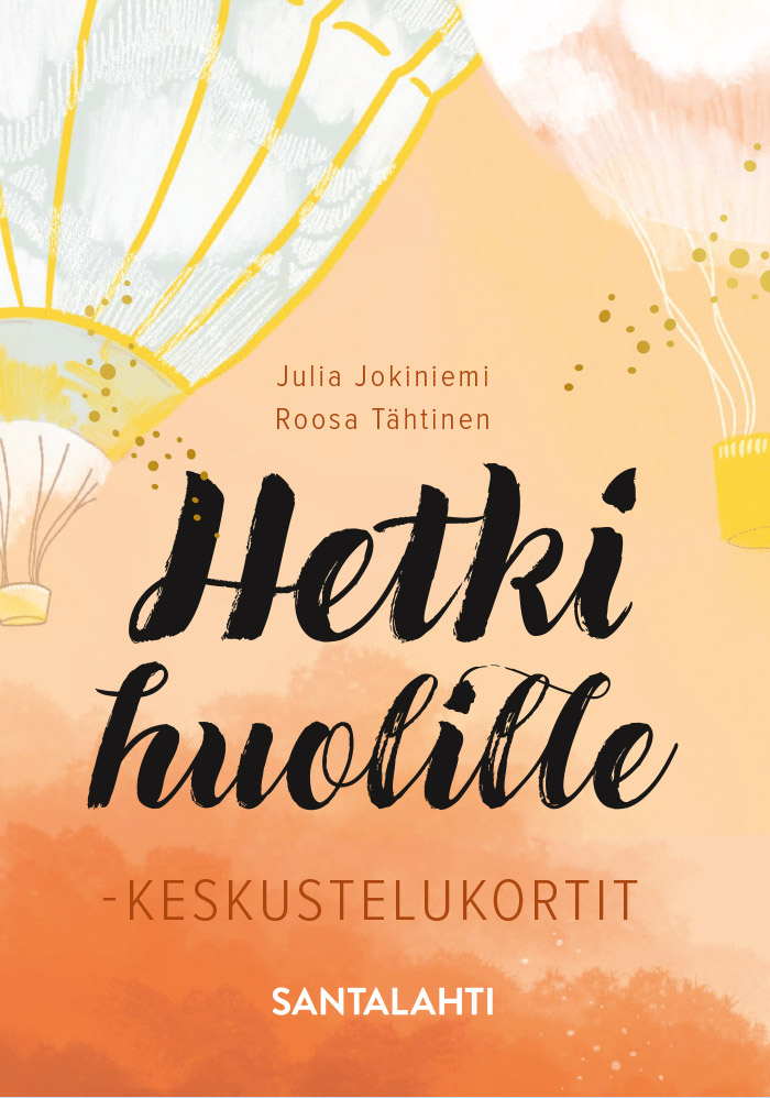 Hetki huolille -keskustelukortit on suunniteltu tukemaan vuorovaikutusta tilanteissa, joissa lapsen tai nuoren on vaikea kertoa mieltään painavista asioista tai aikuisen ottaa ne puheeksi. Korttien puhuttelevat kuvitukset ja minämuotoon kiteytetyt tekstit johdattelevat keskustelemaan muun muassa ihmissuhteisiin, kehoon ja mieleen liittyvistä huolista. Mukana on myös keskustelun tukikortteja, joissa kerrottujen kysymysten ja vinkkien avulla esiin tullutta asiaa on helppo lähteä purkamaan yhdessä.