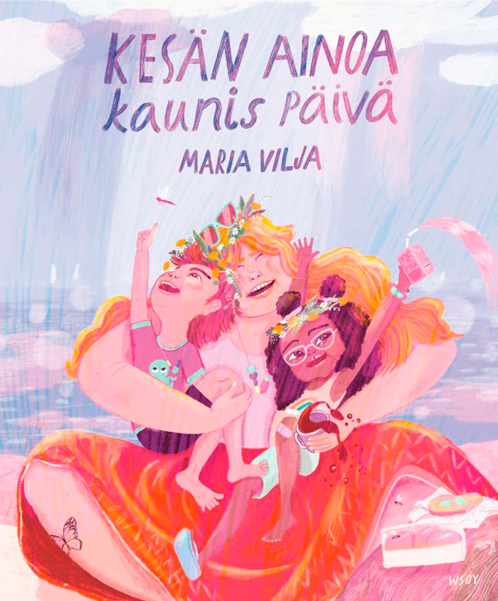 Maria Vilja kirjoittaa ja piirtää tunteista ja perhesuhteista kauniin herkkävireisesti. Kesäpäivään kuuluu niin iloa ja itkua, rakkautta ja riitelyä kuin aurinkoa ja ukkospilviäkin. Sanomana on, että kaikilla on oikeus tunteisiin, sekä lapsilla että aikuisilla. Kirjan utuiset kuvituskuvat ovat kuin muistoja menneestä kesästä.