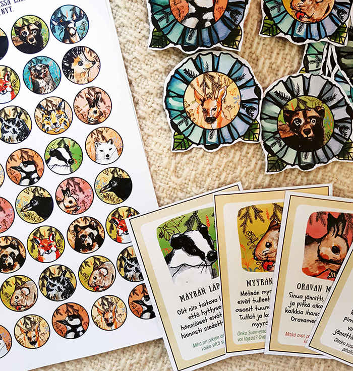 Korttien ajatuksena on, että merkkejä kerätään useamman luontoulkoilun ajan ja niiden määrästä pidetään lukua settiin kuuluvien pienten eläinkuvakkeiden avulla.