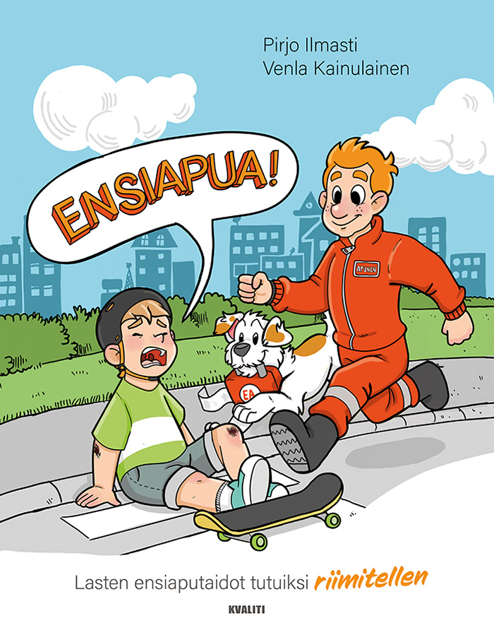 ENSIAPUA! Lasten ensiaputaidot tutuiksi riimitellen -kirjassa Pirjo Ilmasti pääsee yhdistämään lastenrunouden ja sairaanhoitajan ammattitaitonsa haaveilemallaan innovatiivisella tavalla. Innostavasta ja pirteän värikkäästä kuvituksesta vastaa työskentelyynsä intohimolla suhtautuva Venla Kainulainen, jolla on myös lähihoitajan koulutus.