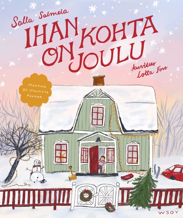 Ihan kohta on joulu! sopii jokaiselle joulua rakastavalle lapselle ja vanhemmalle. Perhevaikuttajana tunnetun Salla Salmelan ja kuvittaja Lotta Forsin käsissä on syntynyt lumoava, joulukalenterina toimiva kertomus, jonka kruunaavat askarteluvinkeistään Instagramissa tunnetun Tiia Kelloniemen ohjeet.