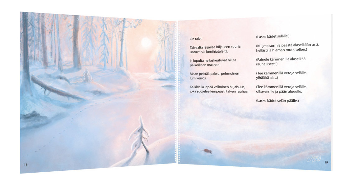 • Opastusta miten voit hyödyntää satuhieronta-kirjaa myös vauvan kanssa
