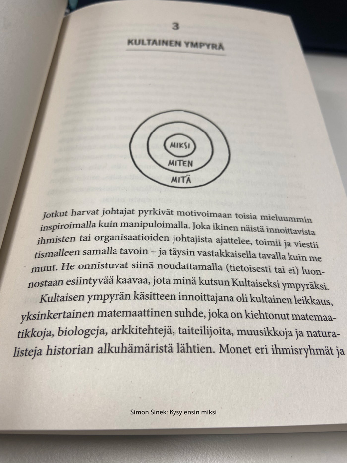 Me sanomme MITÄ teemme, joskus sanomme, MITEN sen teemme, mutta vain harvoin sanomme, MIKSI teemme sitä, MITÄ teemme.