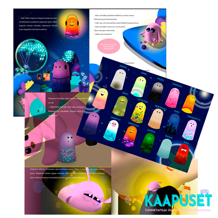 Lähde kaapusten mukaan ensimmäiselle matkalle Maahan tutustumaan näihin sympaattisiin pieniin olentoihin. Tarinan edetessä harjoitellaan tunteiden tunnistamista ja kartutetaan tunnesanavarastoa kuin huomaamatta!