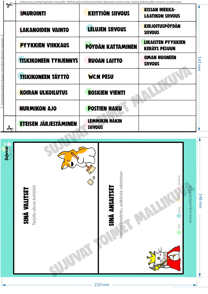 Kun kotityö on hoidettu, magneetin voi siirtää sinä ansaitset-sarakkeeseen.