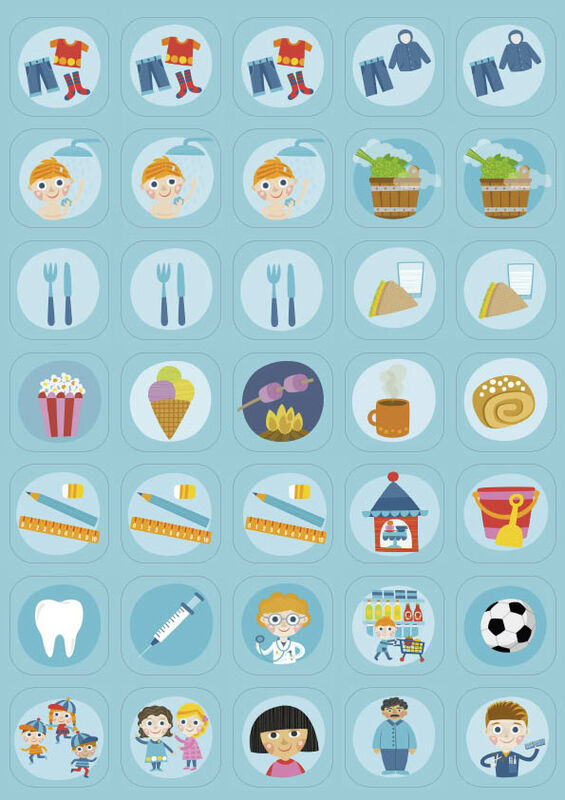 Täydennyspakkauksen kuviin on valittu lisää arkisia puuhia täydentämään kalenterin alkuperäistä valikoimaa.