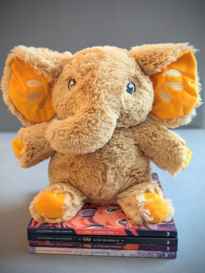Pisaranmuotoiset kuviot hänen korvissaan muistuttavat siitä, että kaikki tunteet ovat aina sallittuja. Fanninkin silmissä nimittäin kimmeltävät usein milloin ilon, milloin kiukun tai surun kyyneleet. Fanni on aika tunteellinen pieni norsu. Tunteet heräävät hänellä herkästi, ja ne tuntuvat voimakkailta.