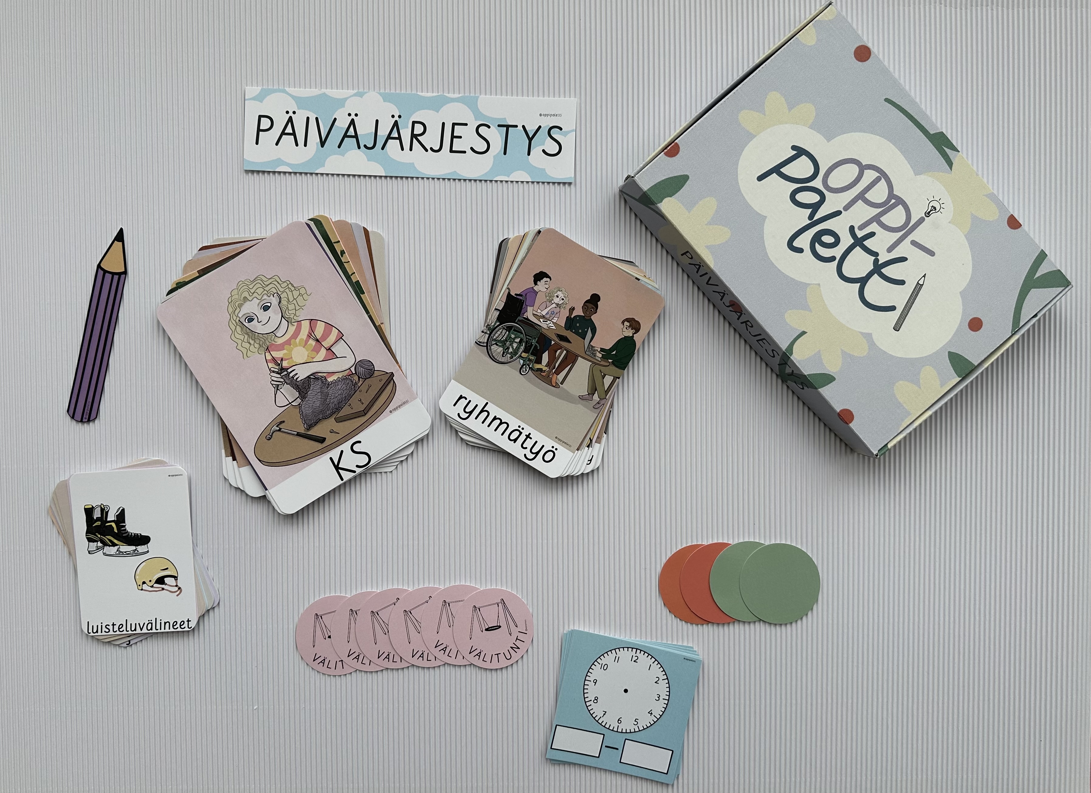 Päiväjärjestys on luokissa yleistyvä työväline. Sen avulla helpotat oppilaidesi ennakointia ja luot selkeyttä päivän kulkuun. Visuaalinen tuki ja yksityiskohtaiset elementit tukevat oppilaan toiminnanohjausta päivän aikana.