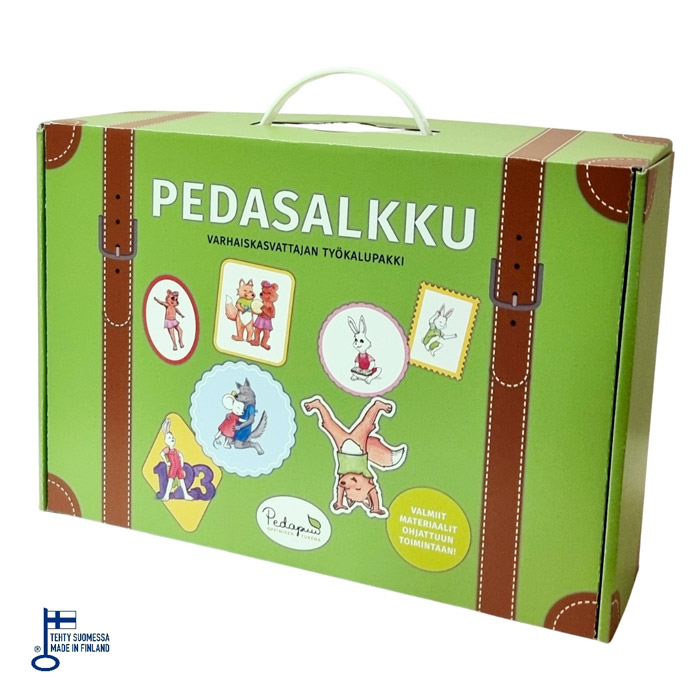 Pedasalkkuun on yhdistetty kaikki Pedapuun suosituimmat ydintuotteet, joita on helppo hyödyntää varhaiskasvatuksen arjessa ihan joka päivä!