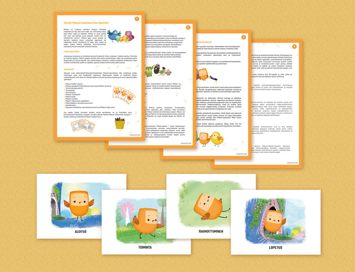 Perusohjepaketti sisältää selkeät ohjeet, joiden avulla Pikkuli-tuokioiden toteuttaminen on helppoa. Lisäksi mukana on neljä Pikkuli -toiminnanohjauskorttia.