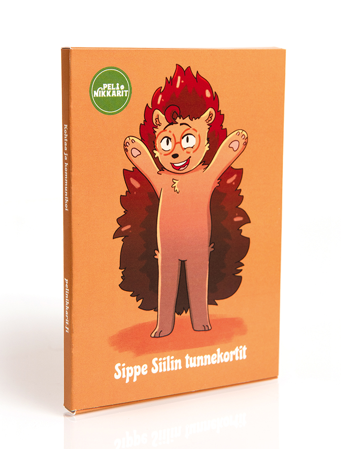 Sippe Siili kortit sisältävät 15 laminoitua, pyyhkimisen kestävää tunnekorttia. Kortit on pakattu pahvikoteloon.