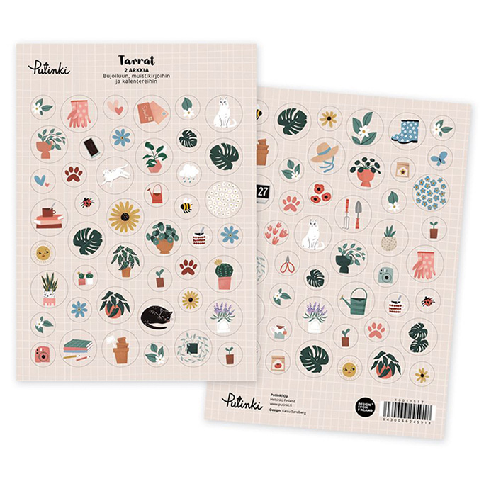 Pakkaus sisältää kaksi erilaista A5 kokoista tarra-arkkia.