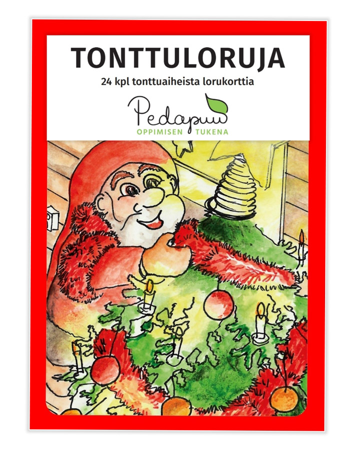 Kuvista löytyy paljon pieniä yksityiskohtia, joita on ilo tutkailla niin lasten kuin aikuistenkin. Riimimittaisten ja mukaansa tempaavien lorujen avulla pääset kurkistamaan Tonttulan joulutunnelmaan. Pakkaus sisältää minijulisteen, josta löydät kaikkien lorukorttien tontut. Kortit toimivat myös joulukalenterina. Kortteja ei ole numeroitu.